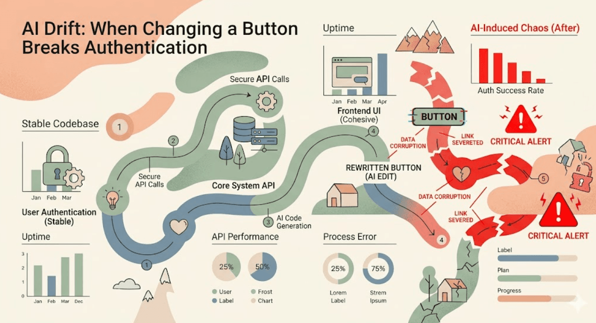 You asked your AI to change a button color. Forty minutes later, you're staring at a broken authentication middleware wondering what just happened. If this sounds familiar, you've experienced what engineers are quietly calling AI drift the creeping, compounding problem of AI assistants making confident-sounding edits that cascade into unexpected failures across your codebase.